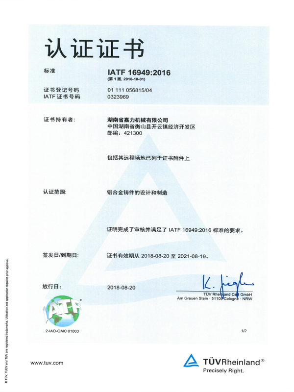 16949質(zhì)量管理證書(shū)