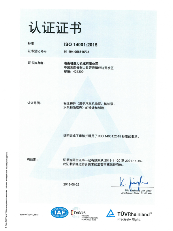 14001環(huán)境管理證書(shū)